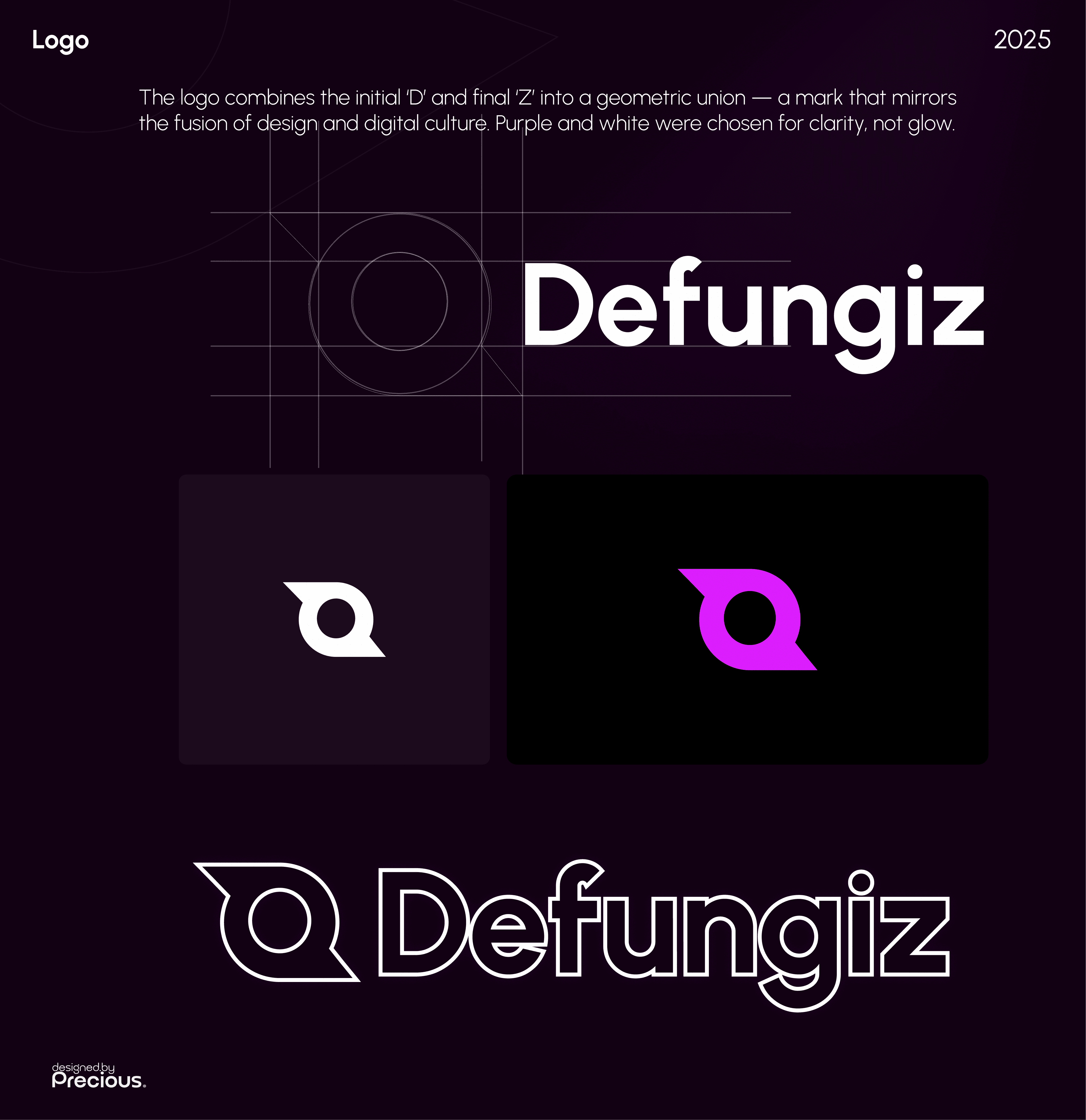 I always start with research. For DeFungiz, I got immersed in the world of fungi — spores, threads, growth patterns, and their strange mix with tech. That research informed the logo concept: a geometric union of the “D” and “Z”, minimal but grounded, paired with a palette the community already gravitated toward — deep purples, sharp whites.The result was clean, flexible, and bold enough to stand beside any mascot or collectible the brand would grow into.